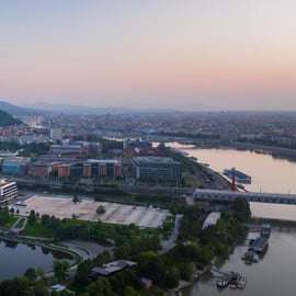 Rozejrzyj się z góry Budapesztu. Udaj się do MOL Campus i panoramiczną windą w centrum dla zwiedzających wjedź na SkyDeck, platformę widokową na wysokości 120 m. Podziwiaj zapierające dech w piersiach widoki Budapesztu z góry.