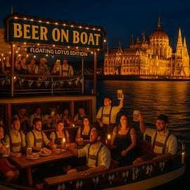 To nie jest tylko rejs. To festiwal na wodzie, gdzie kufle piwa brzęczą, muzyka na żywo wypełnia pokład, światła migoczą na Dunaju, a za tobą rozciąga się zapierająca dech w piersiach panorama miasta.