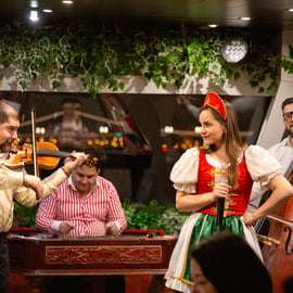 Przeżyj niezapomniany rejs po Dunaju i podziwiaj majestatyczne zabytki Budapesztu z zupełnie nowej perspektywy! Niech Cię oczaruje melodie grane na żywo przez zespół muzyczny, a barwne tańce węgierskich artystów w tradycyjnych strojach przeniosą Cię w sam środek kulturalnego serca Węgier. To widowisko, które zapadnie Ci w pamięć na długo!
