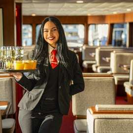 Uwiecznij niepowtarzalne widoki na zdjęciach i rozkoszuj się pysznymi napojami w eleganckim barze na pokładzie z obsługą kelnerską!