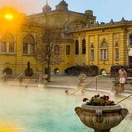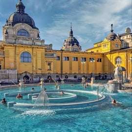 Zrelaksuj się w łaźniach Széchenyi w Budapeszcie z prywatnym transportem z hotelu. Ciesz się leczniczymi wodami termalnymi, saunami, łaźniami parowymi i jacuzzi w oszałamiającym neobarokowym otoczeniu.